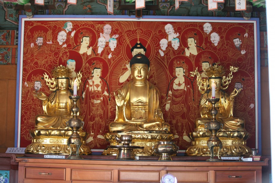위로 가기금동아미타여래좌상은 극락전 주불로 모시고 있는데 과학적 조사(성분분석, X-ray)를 통해 불상(높이 87.5cm, 무릎폭 63cm) 두부에서“大德五年辛丑五月二十日 宮闕都監錄事別將丁承說 印出」”의 묵서가 적힌 기록이 발견되어 연대는 1301년(대덕5년, 고려 충렬왕 27년)에 쓰인 것을 알 수 있다. 그 외 일체보협인다라니(1292년)와 태장경만다라에도 연대가 있었고, 묵서(墨書)가 적힌 향낭(香囊) 등도 출토되었다.