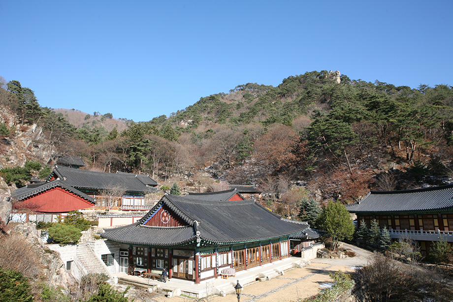 대승사에서 포장도로를 따라 내려가다 윤필암 안내판이 서 있는 삼거리에서 500m쯤 포장길을 올라가면 웅장한 암벽을 배경으로 윤필암이 위치하고 있다.